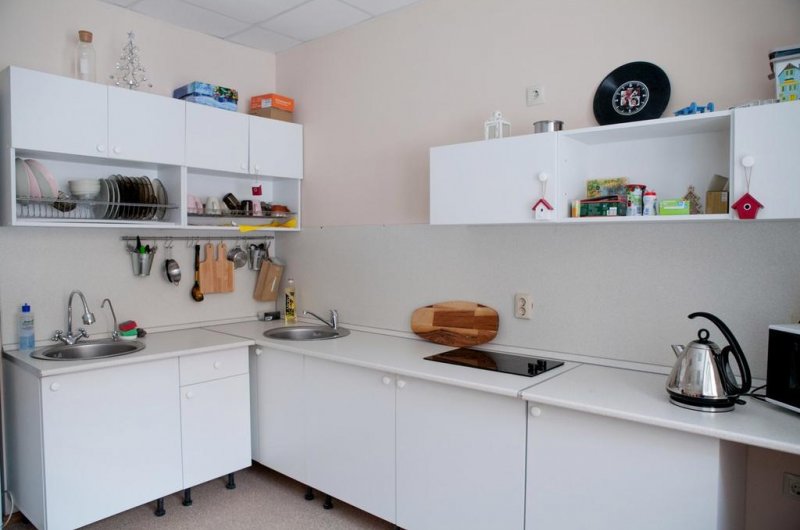 Гостям предлагается бесплатный чай и печенье. Для приготовления еды клиенты могут воспользоваться общей кухней, имеющей электрическую плиту, духовой шкаф, микроволновую печь, прочую бытовую технику и посуду. Возможен заказ готовых блюд в службе доставки еды.